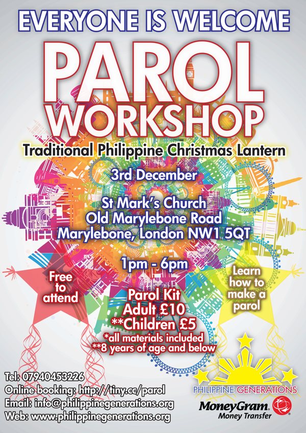 This Christmas, Philippine Generations is inviting everyone to take time away from the Christmas rush and join us to learn a new skill and keep this tradition alive. This will be our third year of hosting the parol workshop and it will be bigger and better than previous years. During the workshop you will learn how to make Filipino Christmas lanterns the traditional way, from bamboo sticks and rice paper. The workshop is open to everyone – young and old, Filipinos and non Filipinos, and across the range of artistic abilities.